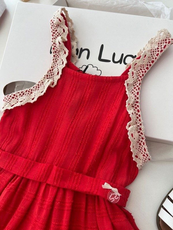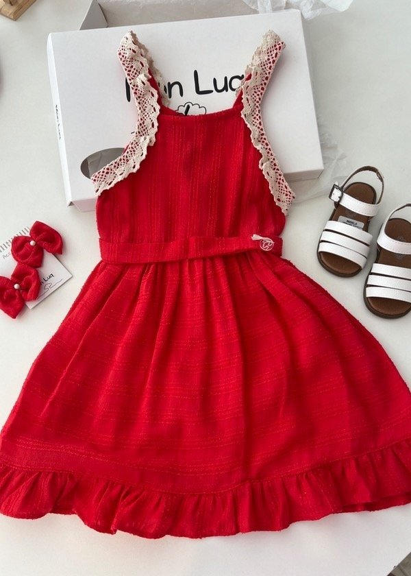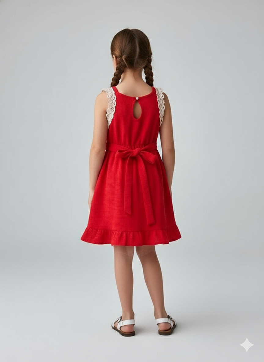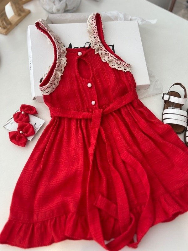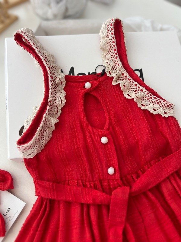 Solera de voaile labrado rojo con detalles en puntillas de algodón