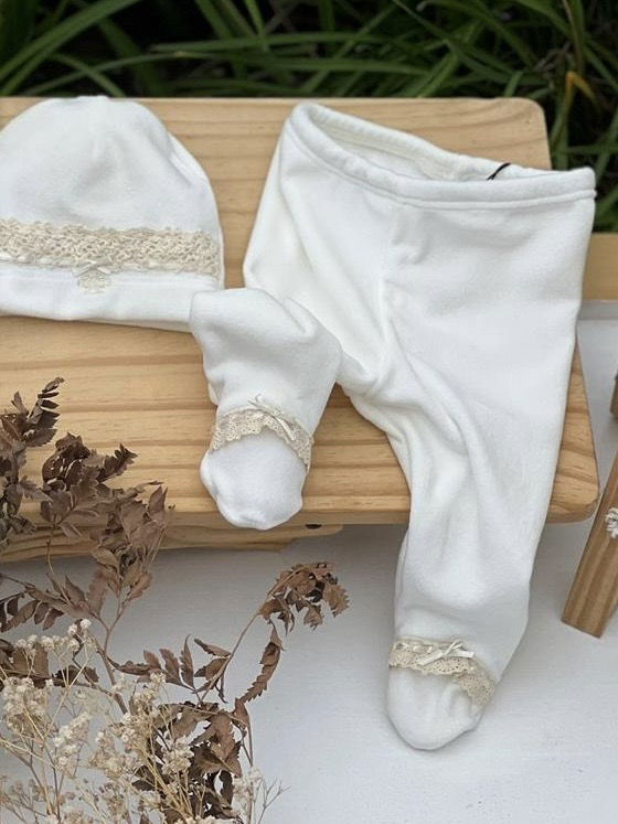 Ajuar Plush doble pelo, es decir en una prenda que tiene frisa en su interior: ideal para bebes nacidos en INVIERNO. Su textura Soft hace que la prenda sea súper suable y blandita para el bebé