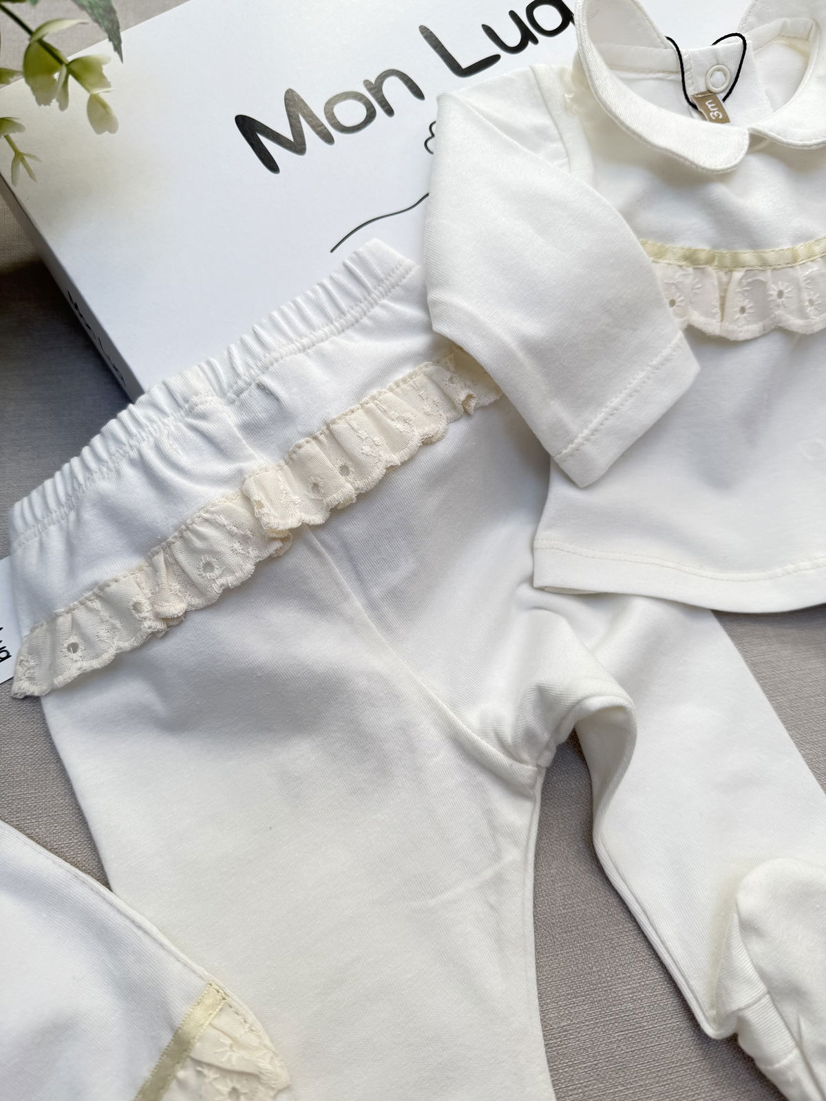 Ajuar Algodón de INTERLOCK, calidad PIMA un prenda ideal para bebes nacidos en MEDIA ESTACION