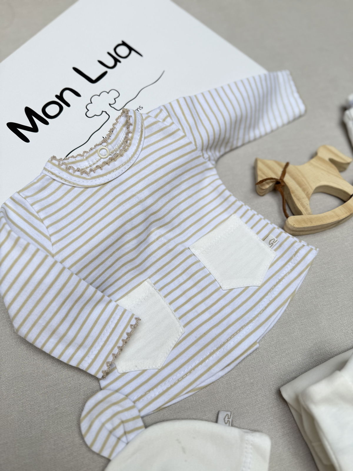 Ajuar Rayas Beige c/picot