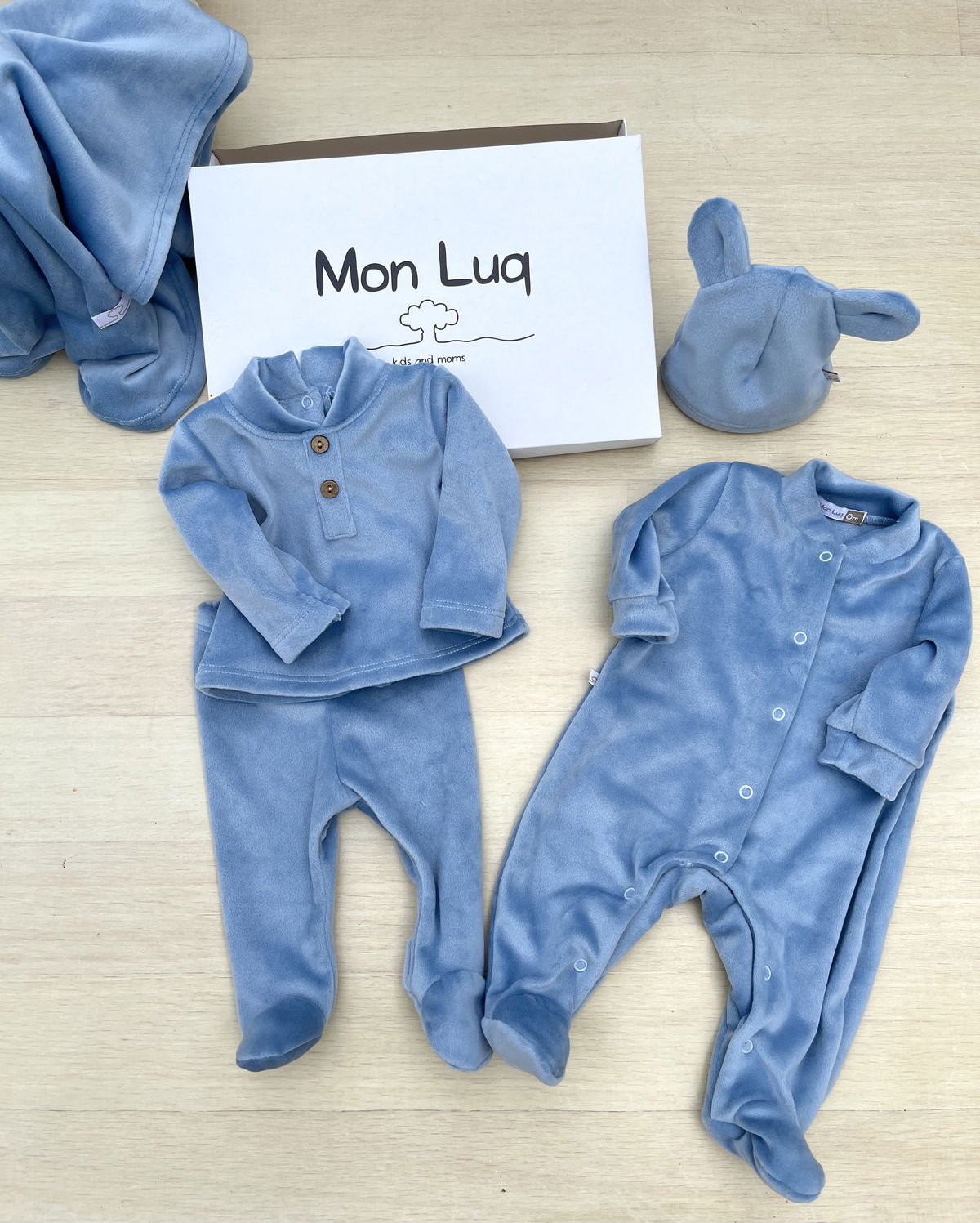 Ajuar Plush doble pelo, es decir en una prenda que tiene frisa en su interior: ideal para bebes nacidos en INVIERNO. Su textura Soft hace que la prenda sea súper suable y blandita para el bebé