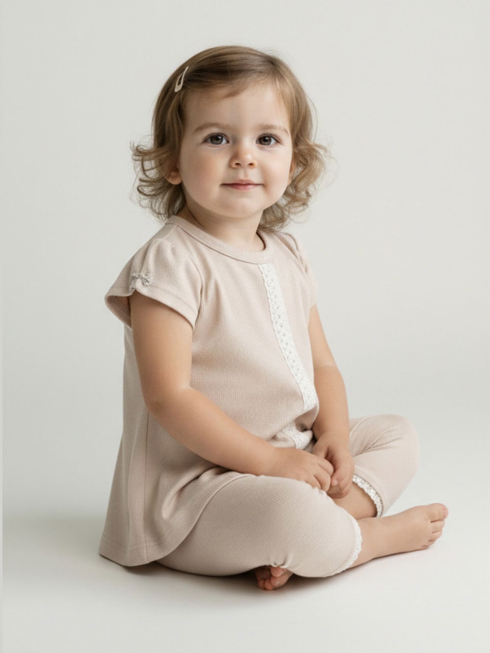 Conjunto Remera + Calza de algodón de Reeb con detalles d e puntilla de algodón en la remera y Picot bordado en la calzita