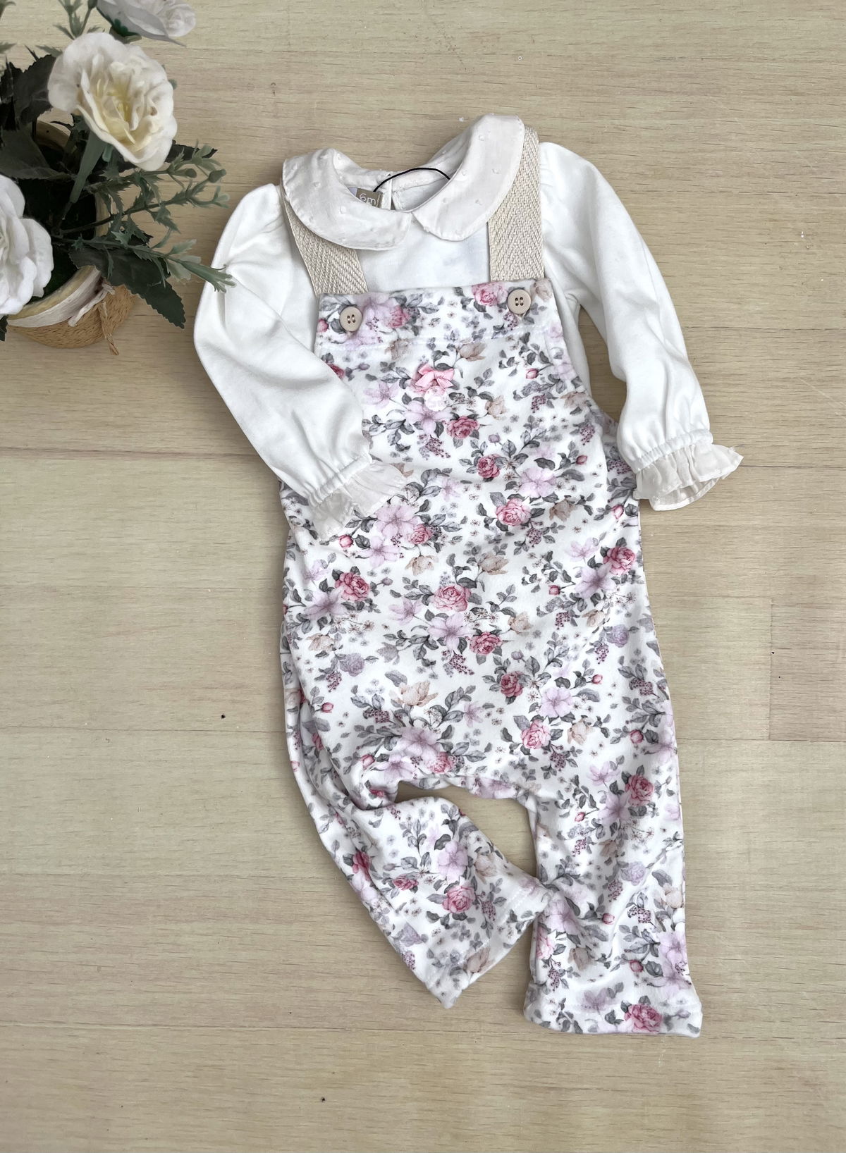 Jardinero Plush Flores rosas