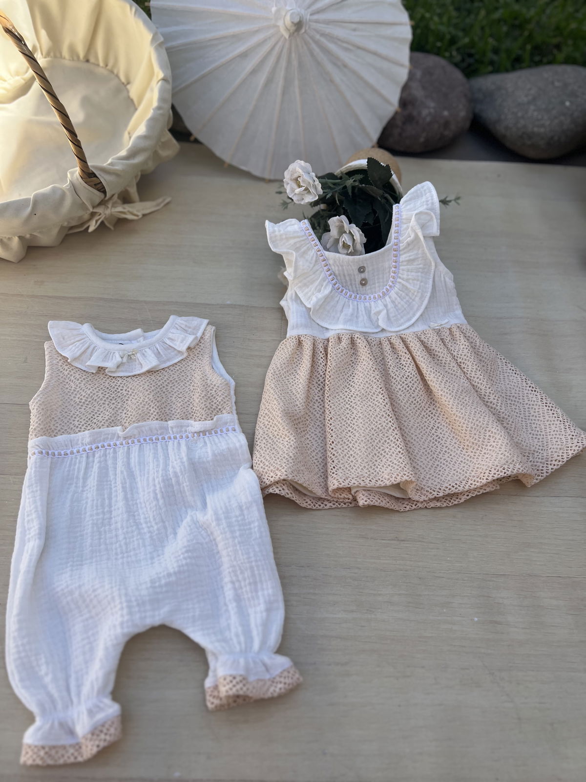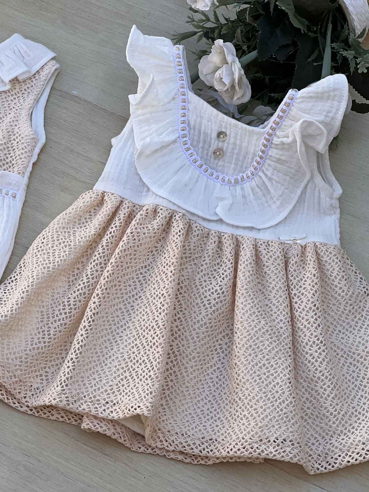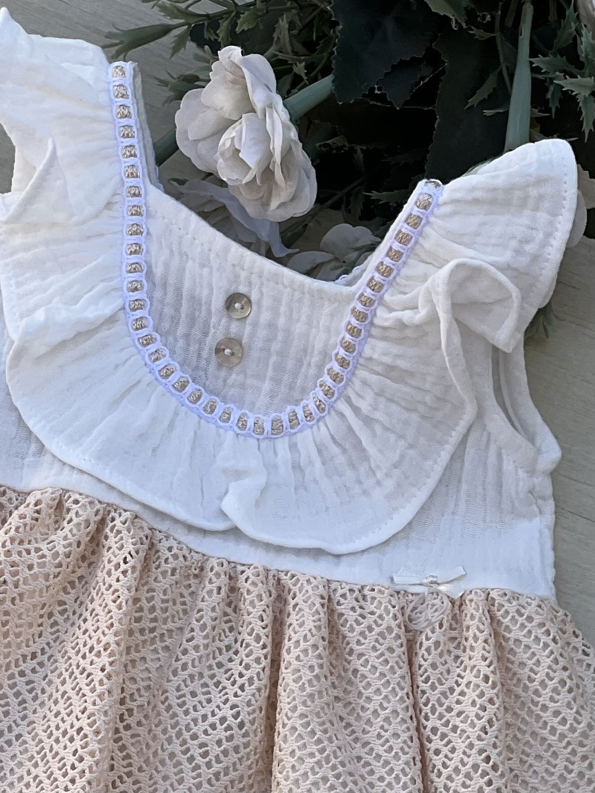 Solera gasa de algodón (cotton) con falda en encaje y detalles de entredos