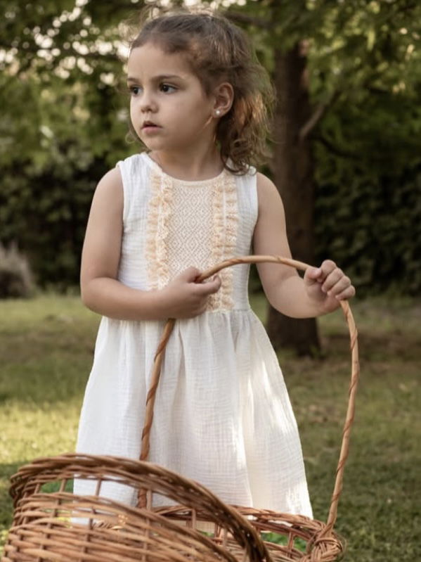 Solera gasa de algodón (cotton) con jabot de encaje en pechera