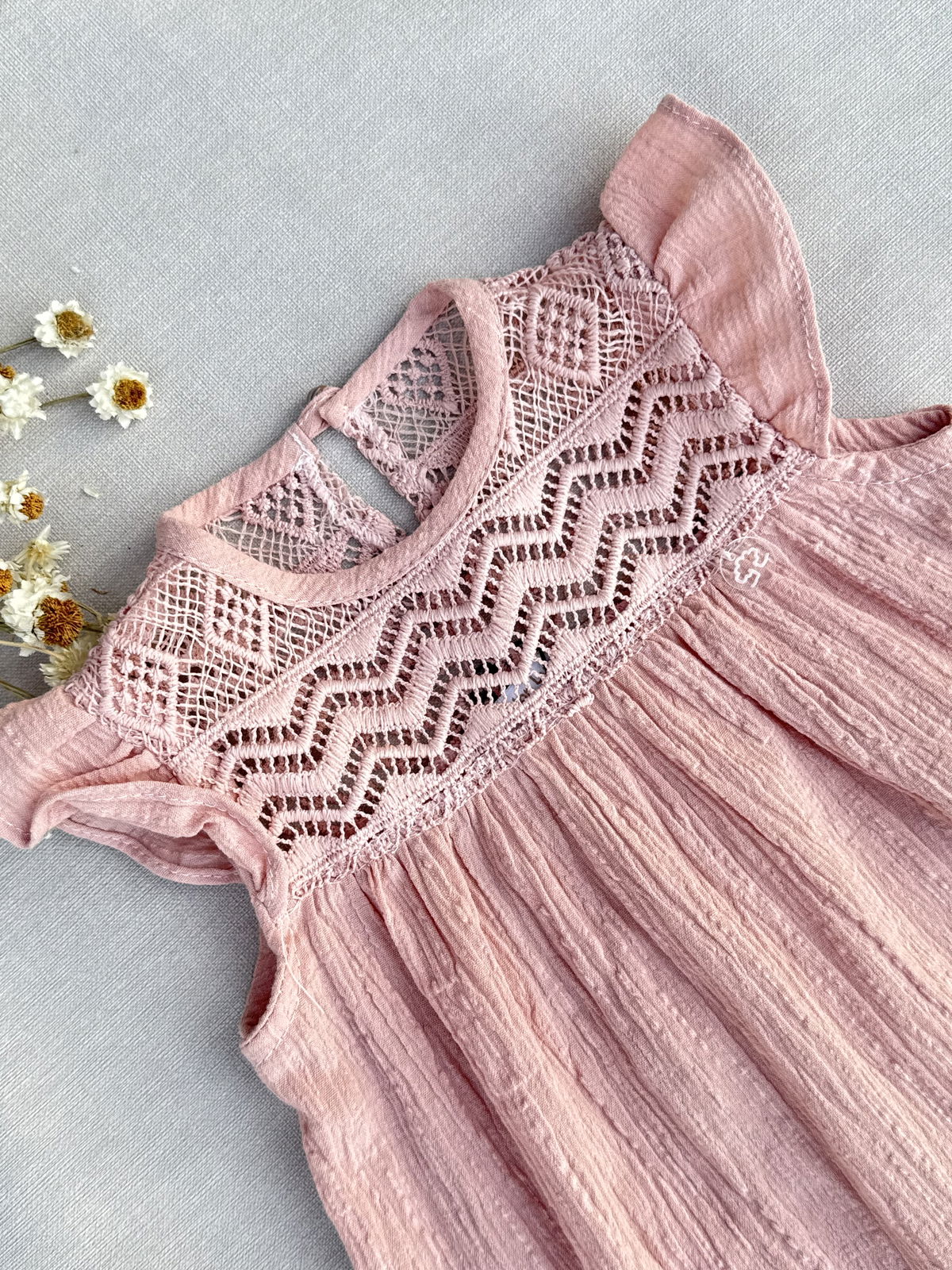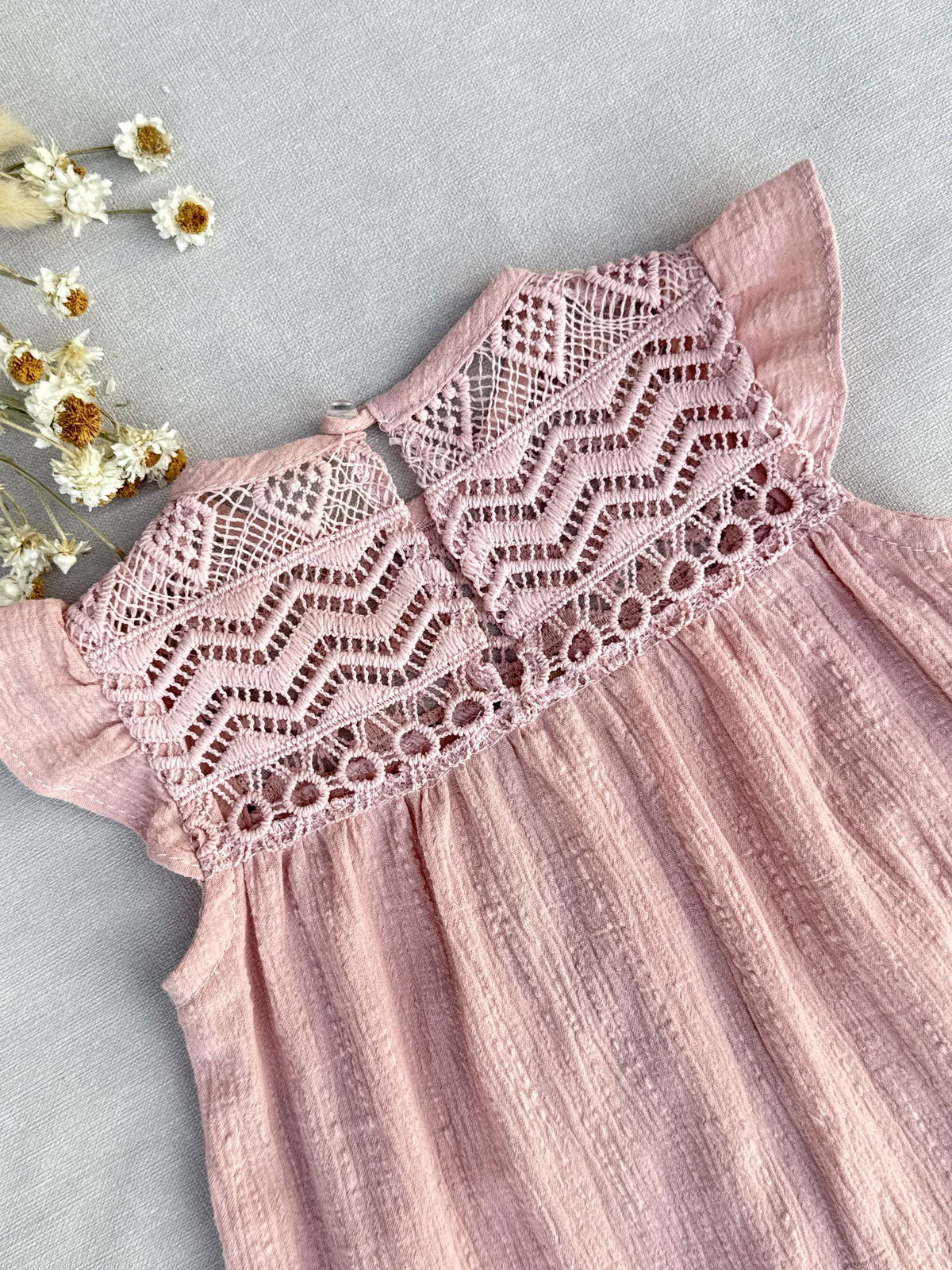Vestido rosa viejo con pechera de guipiur al tono