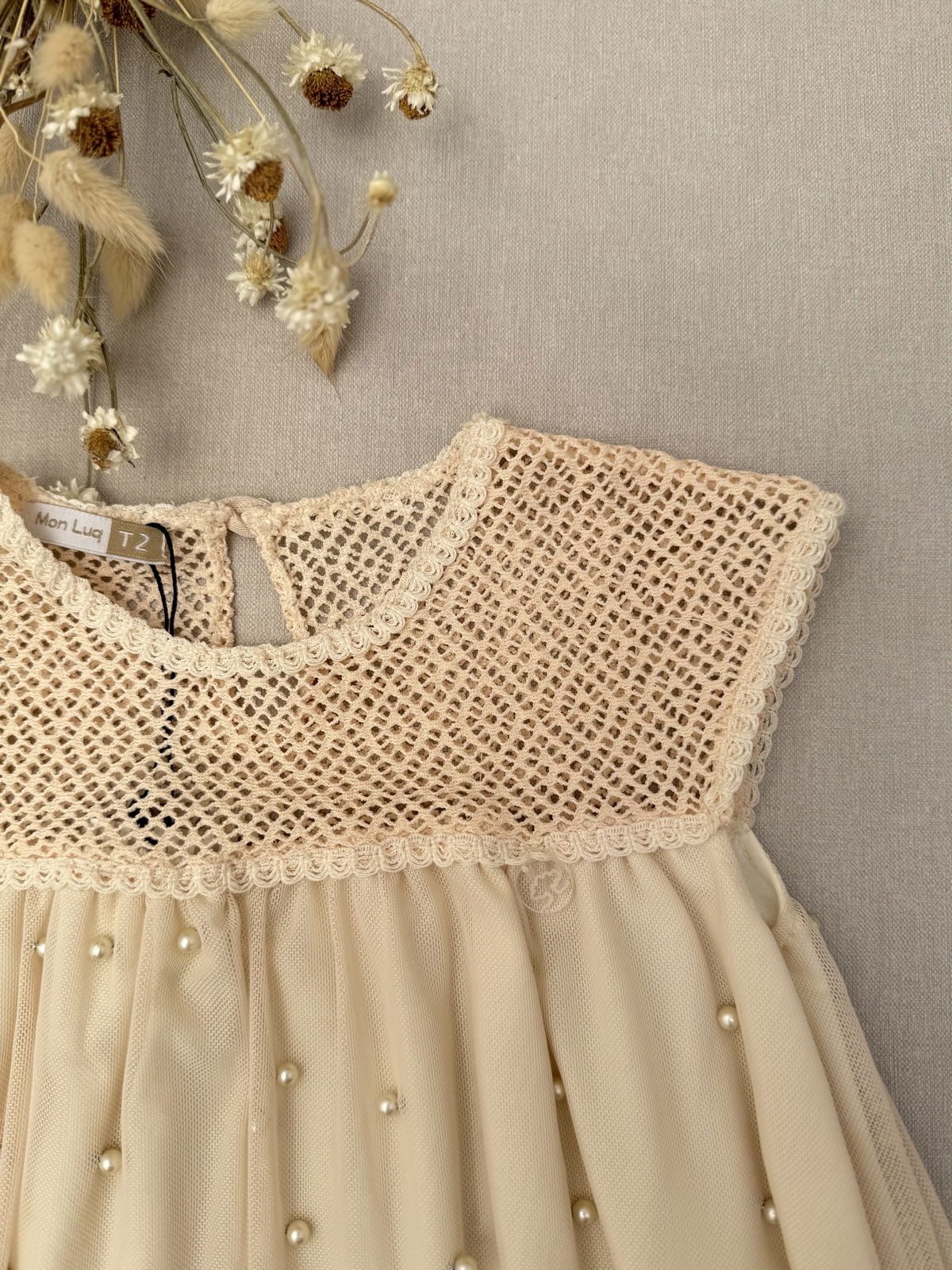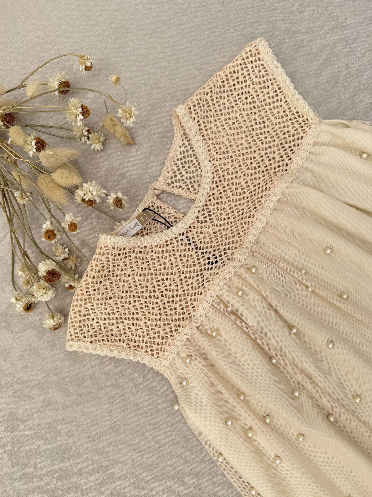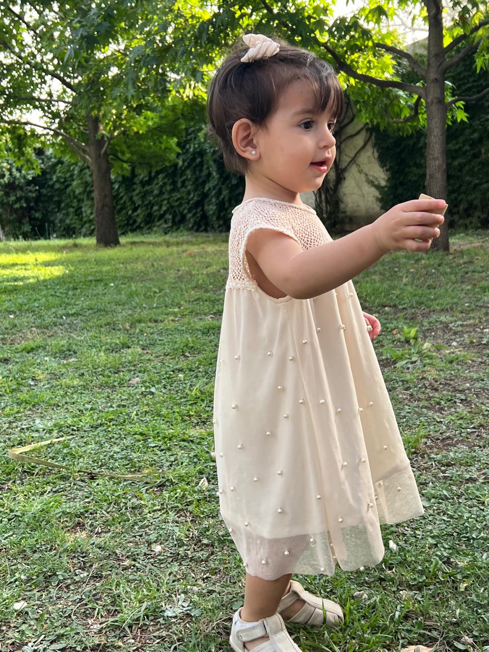 Vestido Perlas Beige