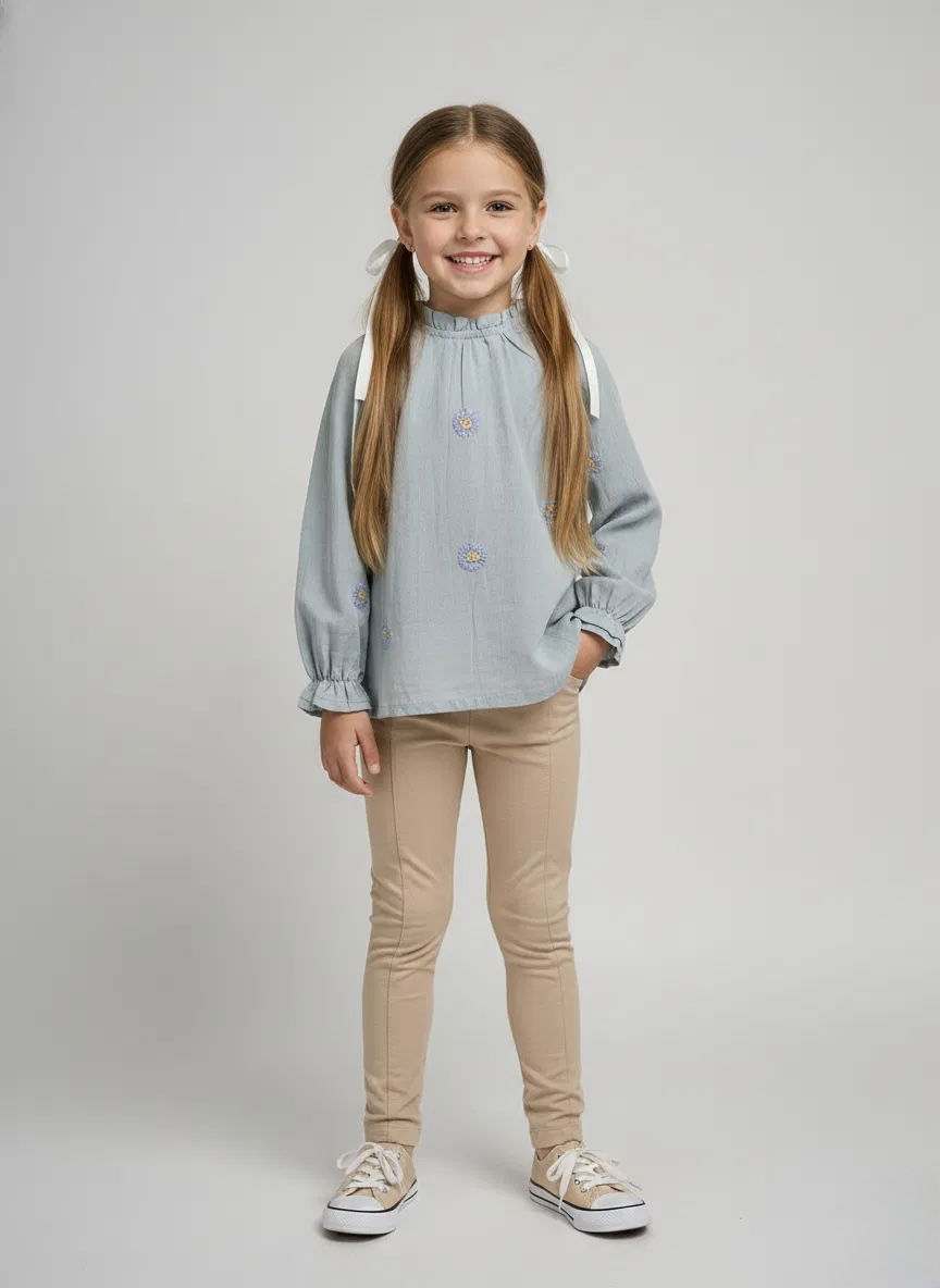 Blusa de gasa de algodón color celeste con bordado mexicano