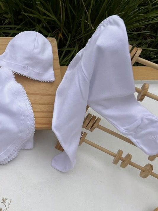 Ajuar Algodón de JERSEY, calidad PIMA un prenda ideal para bebes nacidos en MEDIA ESTACION