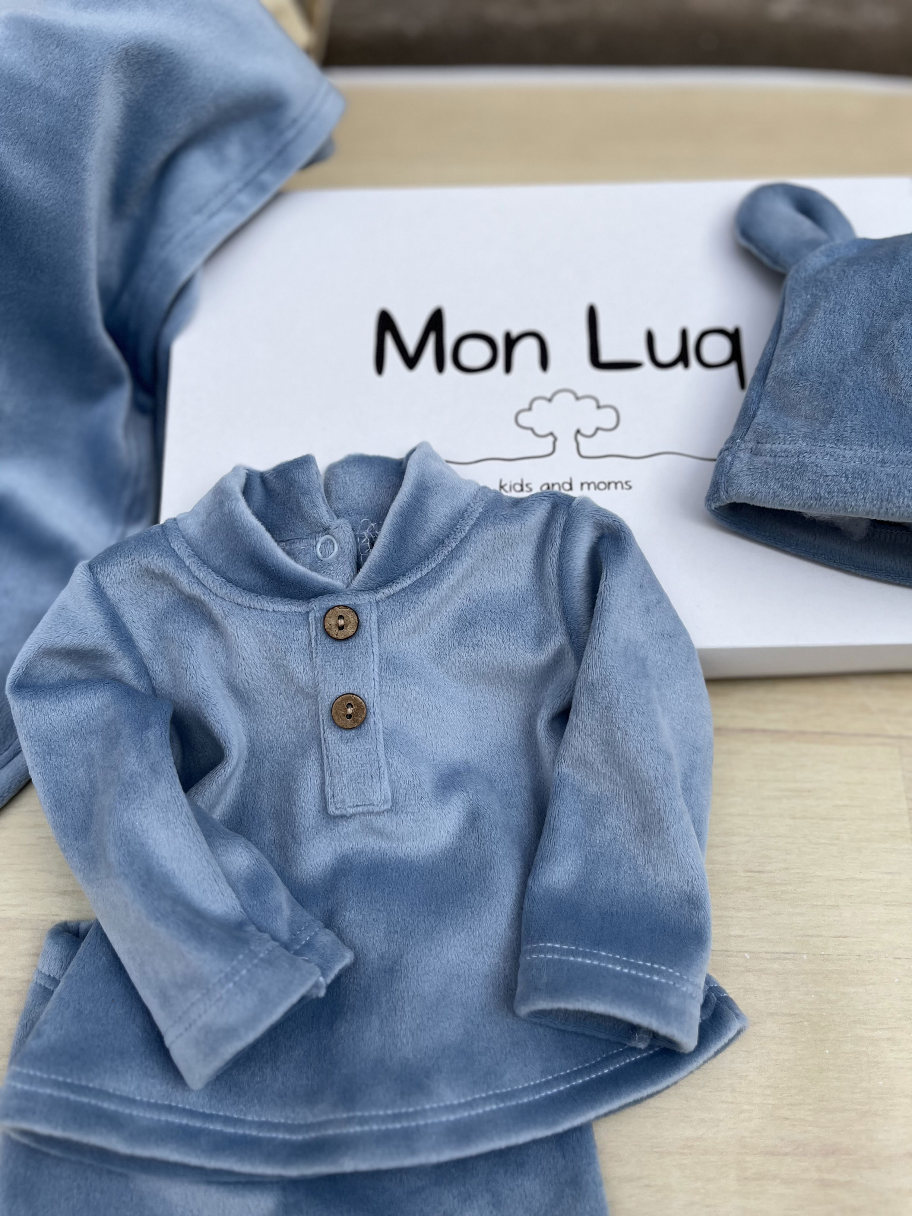 Ajuar Plush doble pelo, es decir en una prenda que tiene frisa en su interior: ideal para bebes nacidos en INVIERNO. Su textura Soft hace que la prenda sea súper suable y blandita para el bebé